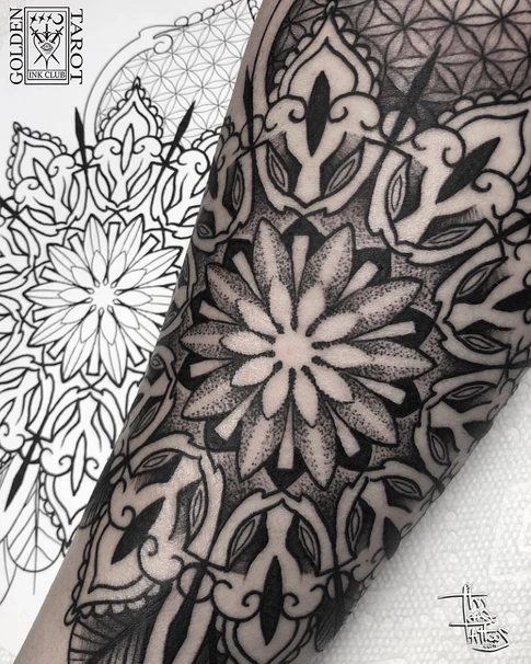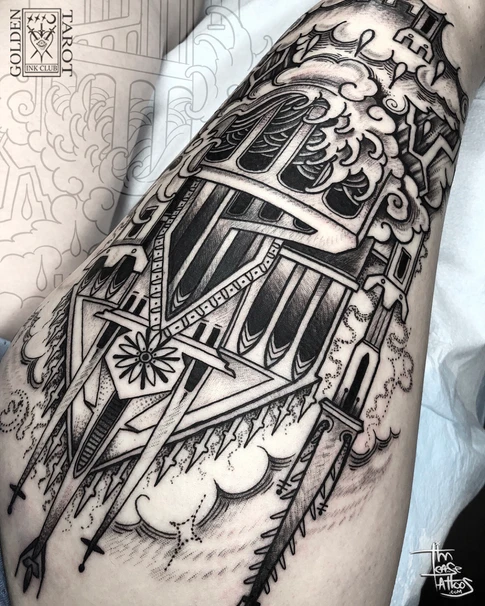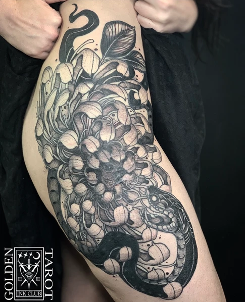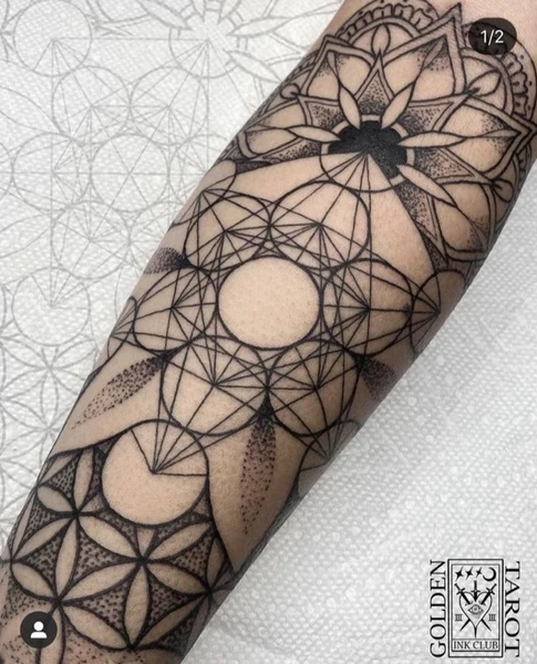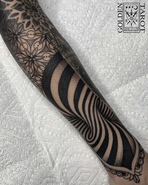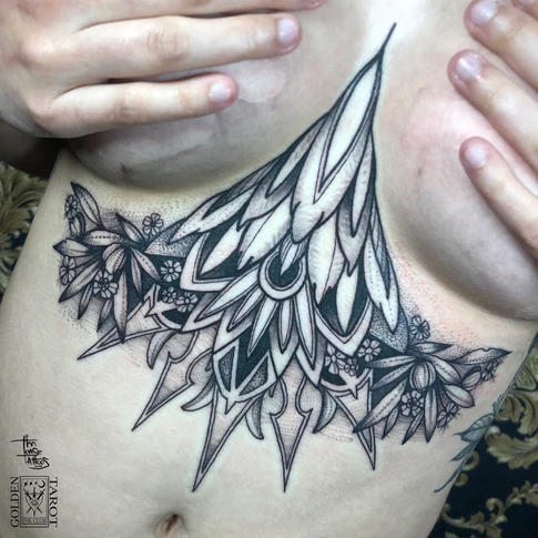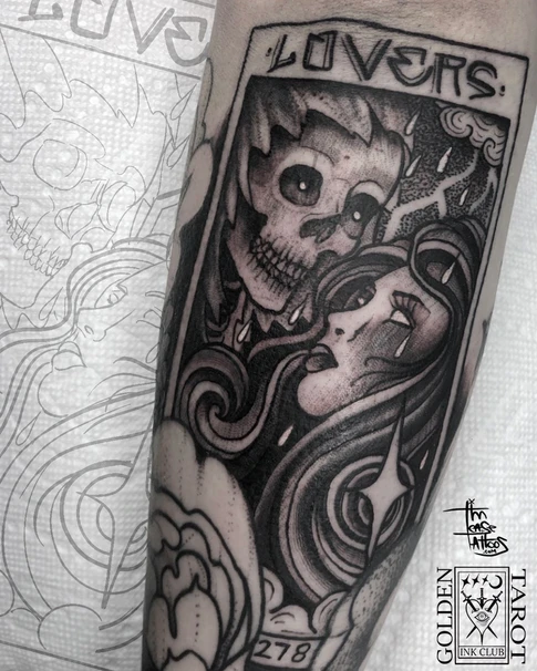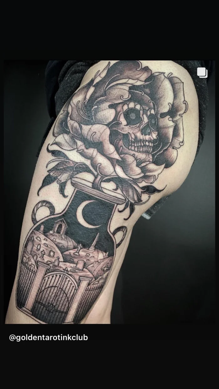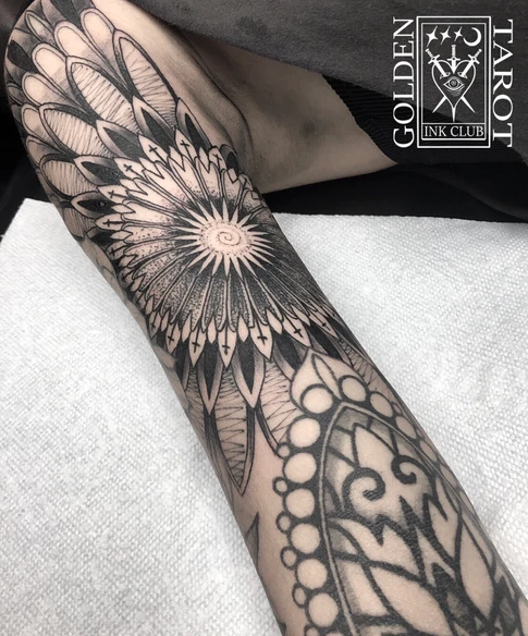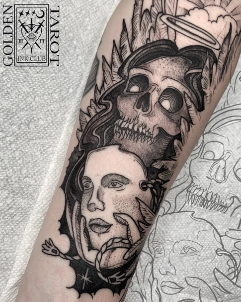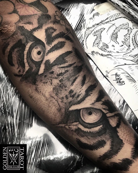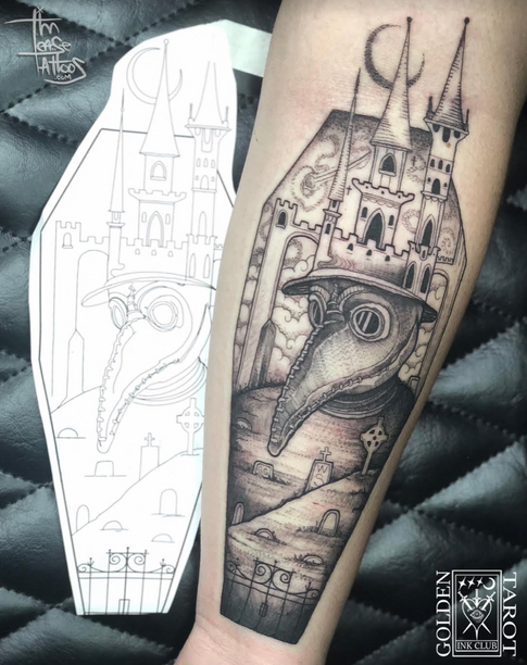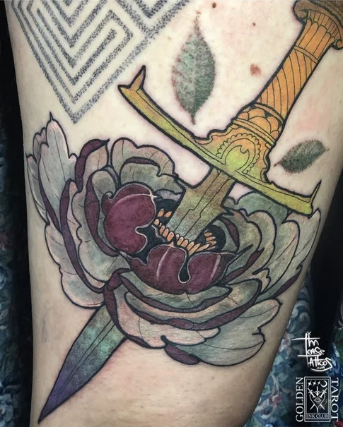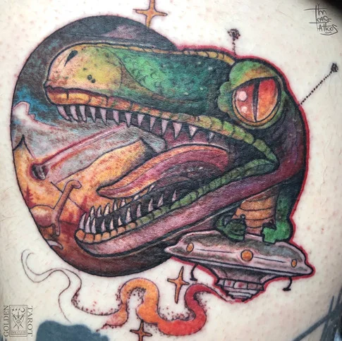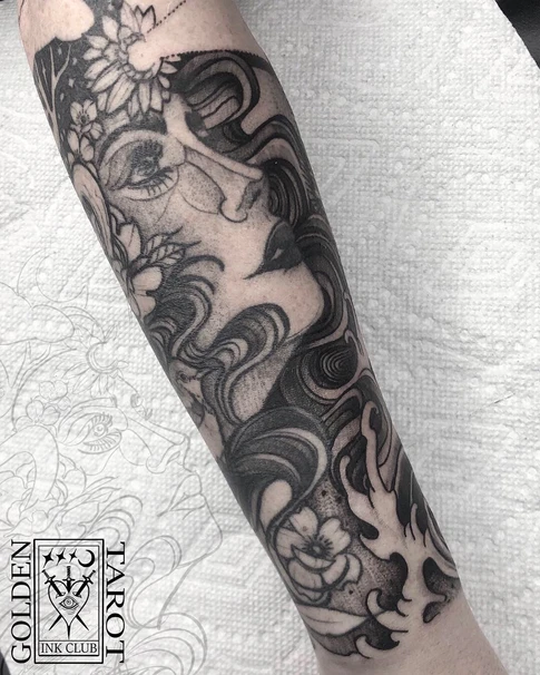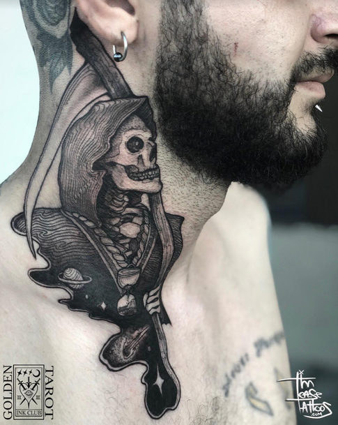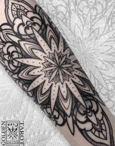 Owner of Golden Tarot Ink Club and Tattoo Artist. Tim enjoys doing large scale black work pieces, and all work is 100% custom drawn at each appointment.