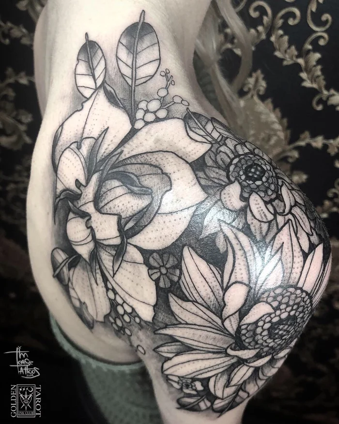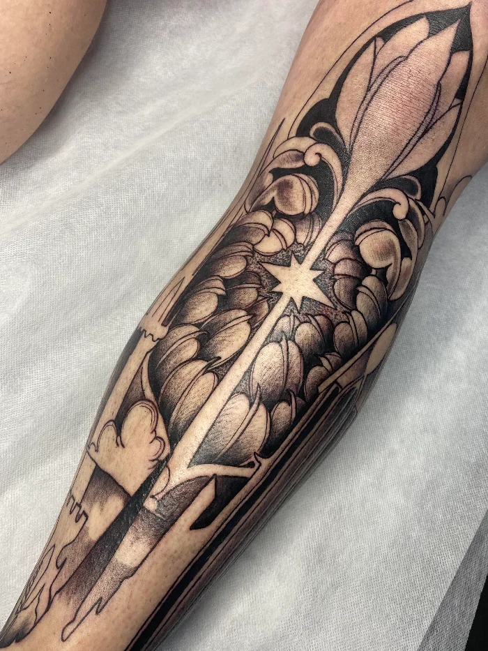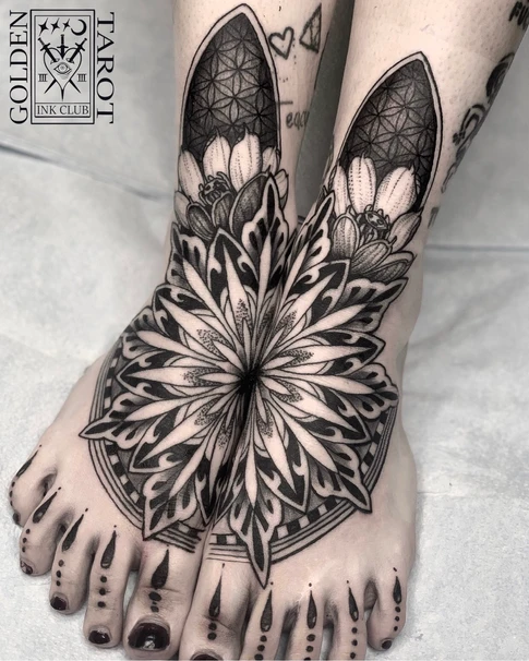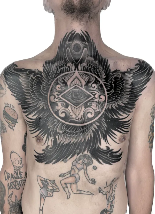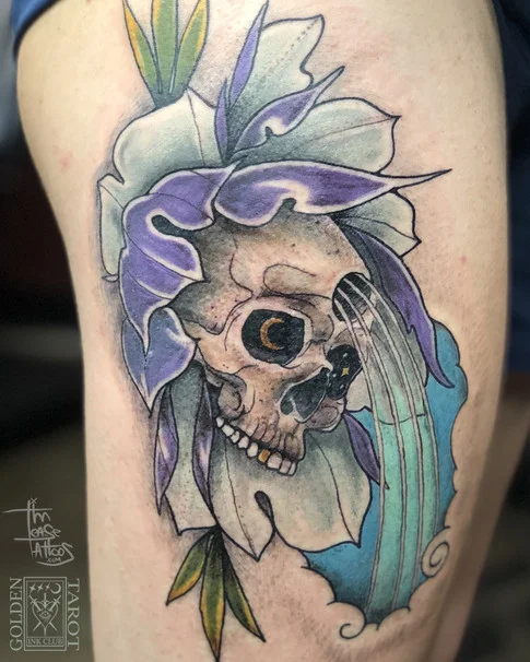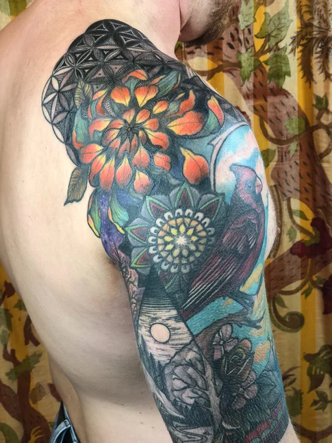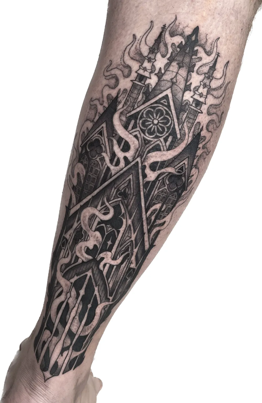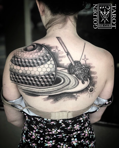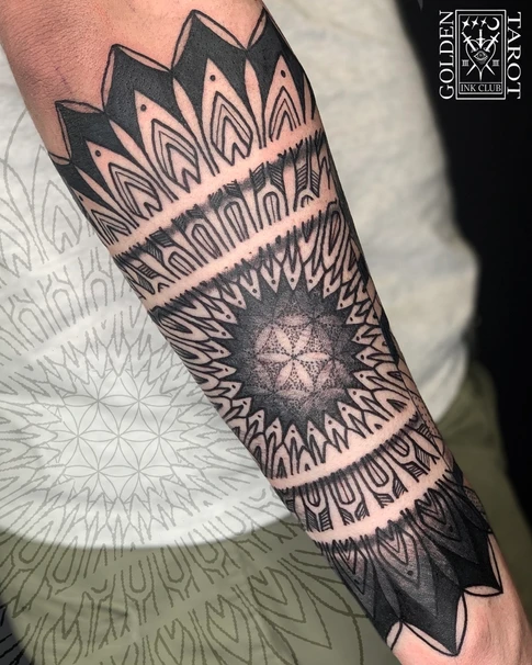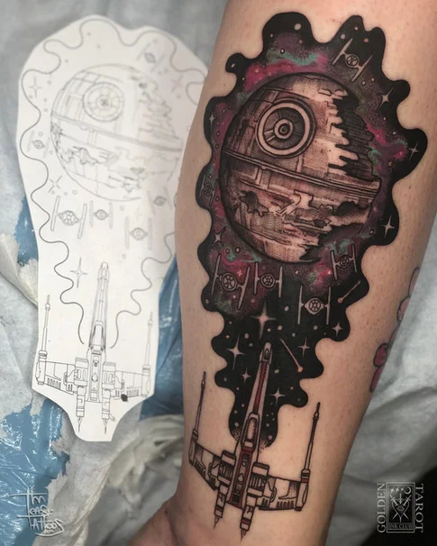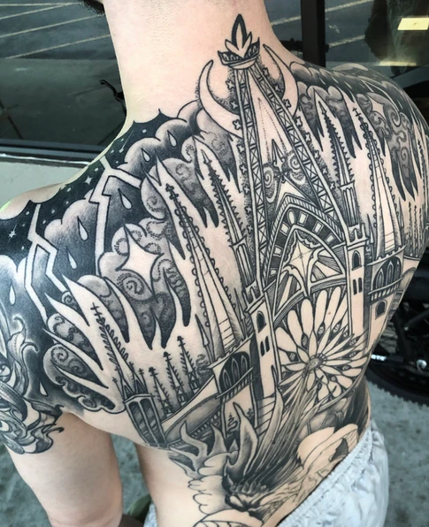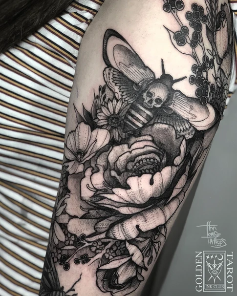 Owner of Golden Tarot Ink Club and Tattoo Artist. Tim enjoys doing large scale black work pieces, and all work is 100% custom drawn at each appointment.